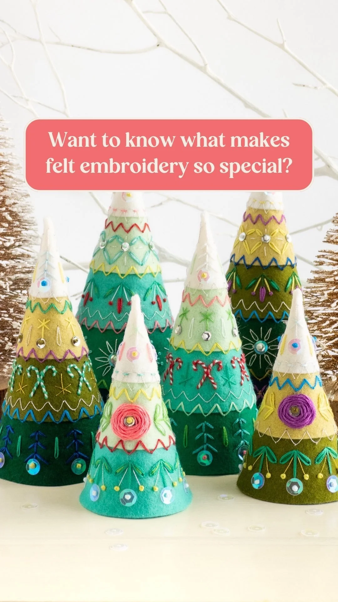 Make your very own hand-stitched forest with the folk embroidered felt Christmas trees pattern. Suitable for stitchers of all levels, this is an unputdownable project you’ll want to add to, year after year!